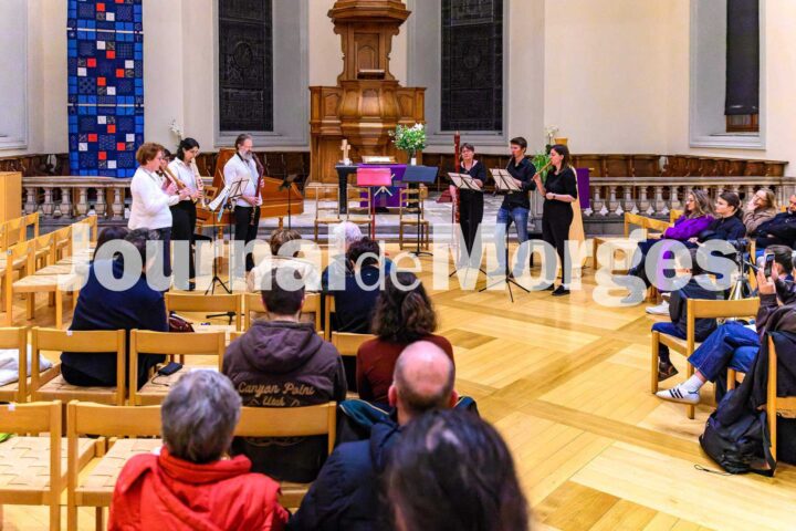Un concert a eu lieu au temple de Morges, interprété par les élèves des classes de harpe, luth, violon, flûtes à bec et orgue de l'École de Musique La Syncope. Au programme figuraient des œuvres de Vivaldi, Händel et Pachelbel. Ce concert s'est tenu au profit du Fond Coup de Pouce de l'Association Les AmiEs de La Syncope, qui soutient l'accès à la musique pour tous.